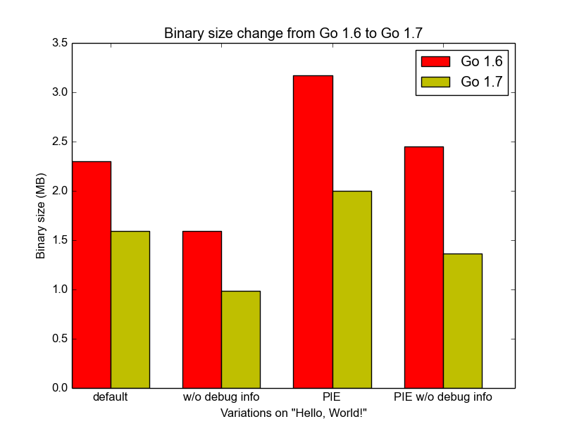 Three significant changes in Go 1.7 affect binary size.